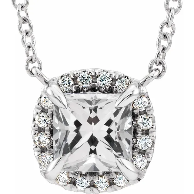 14K White 4 mm Natural White Sapphire & .05 CTW Natural Diamond 18″ Necklace