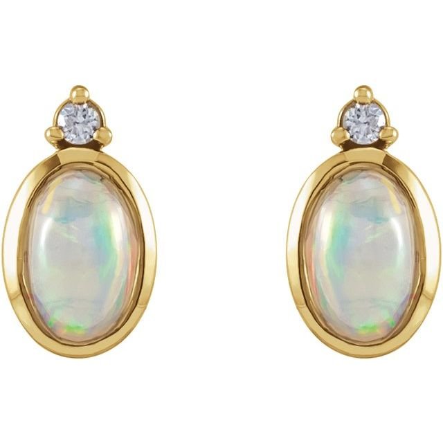 14K Yellow Natural Ethiopian Opal & .06 CTW Natural Diamond Bezel-Set Earrings