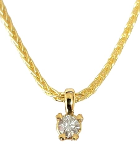 I recently purchased a stunning necklace as a 1st anniversary gift for my girlfriend, and she absolutely loved it! The .15 CT stone sparkles beautifully, and the 18K yellow gold setting adds an elegant touch. The craftsmanship is outstanding, and my girlfriend was overjoyed with the piece. It made our 1st anniversary truly special, and I highly recommend this necklace as a meaningful gift for a loved one.